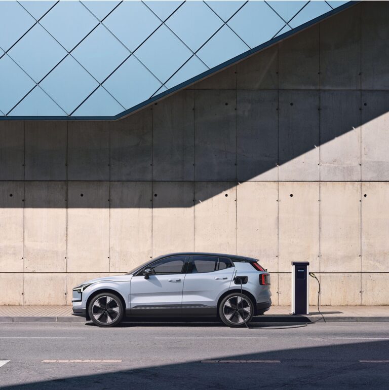 Volvo EX30 (Vollelektrisch) Energieverbrauch: ca. 15–17 kWh/100 km (je nach Version und Antriebsart) CO₂-Emissionen: 0 g/km (vollelektrisch) Reichweite (WLTP): ca. 400–480 km (abhängig von Batteriegröße und Antrieb)